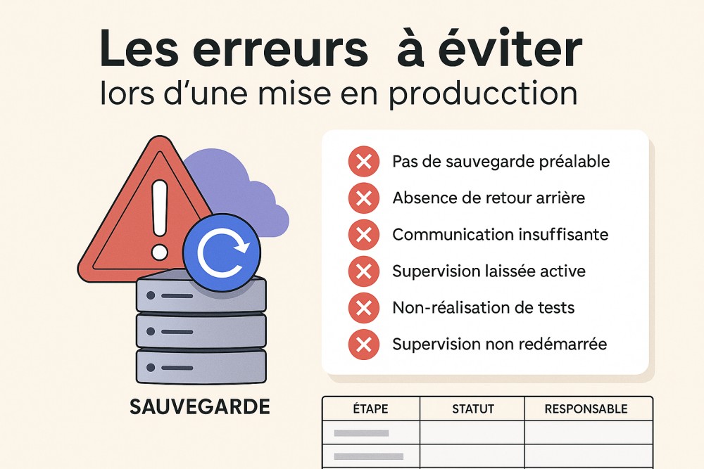 Voici une checklist complète des erreurs à éviter, avec des rappels essentiels sur la sauvegarde, la communication, la supervision et la relance des services.